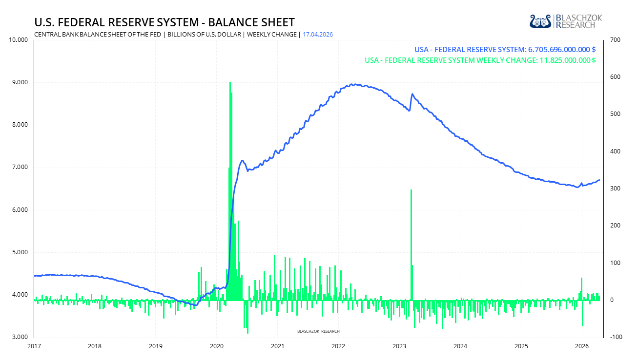 Dies ist eine fundamentale Weichenstellung, denn ein Bilanzabbau der Fed ist nichts anderes als eine Kontraktion der Geldmenge. Wenn auslaufende Anleihen nicht reinvestiert werden, wird dem System weiter Liquidität entzogen. Die nach der Pandemie weiter massiv aufgeblähte Geldmenge M2 würde unter Warsh strukturell schrumpfen. Genau das entspricht im Kern jener Bereinigung, die Vertreter der Österreichischen Schule seit Jahren fordern, nämlich dem Abbau der durch QE geschaffenen Geldmenge und der daraus entstandenen Fehlallokationen.