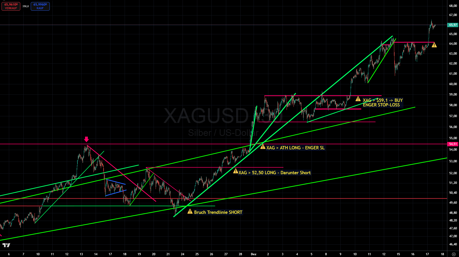 Gleichzeitig zeigt die Erfahrung, dass Silber genauso schnell und stark korrigieren kann, wie es zuvor gestiegen ist. Irgendwann kommt daher auch der Zeitpunkt, um Gewinne mitzunehmen, insbesondere nach dem extrem starken Preisanstieg in diesem Jahr. Im Trading orientieren wir uns deshalb an klaren technischen Marken und realisieren Gewinne schrittweise, sobald diese Marken gebrochen werden.